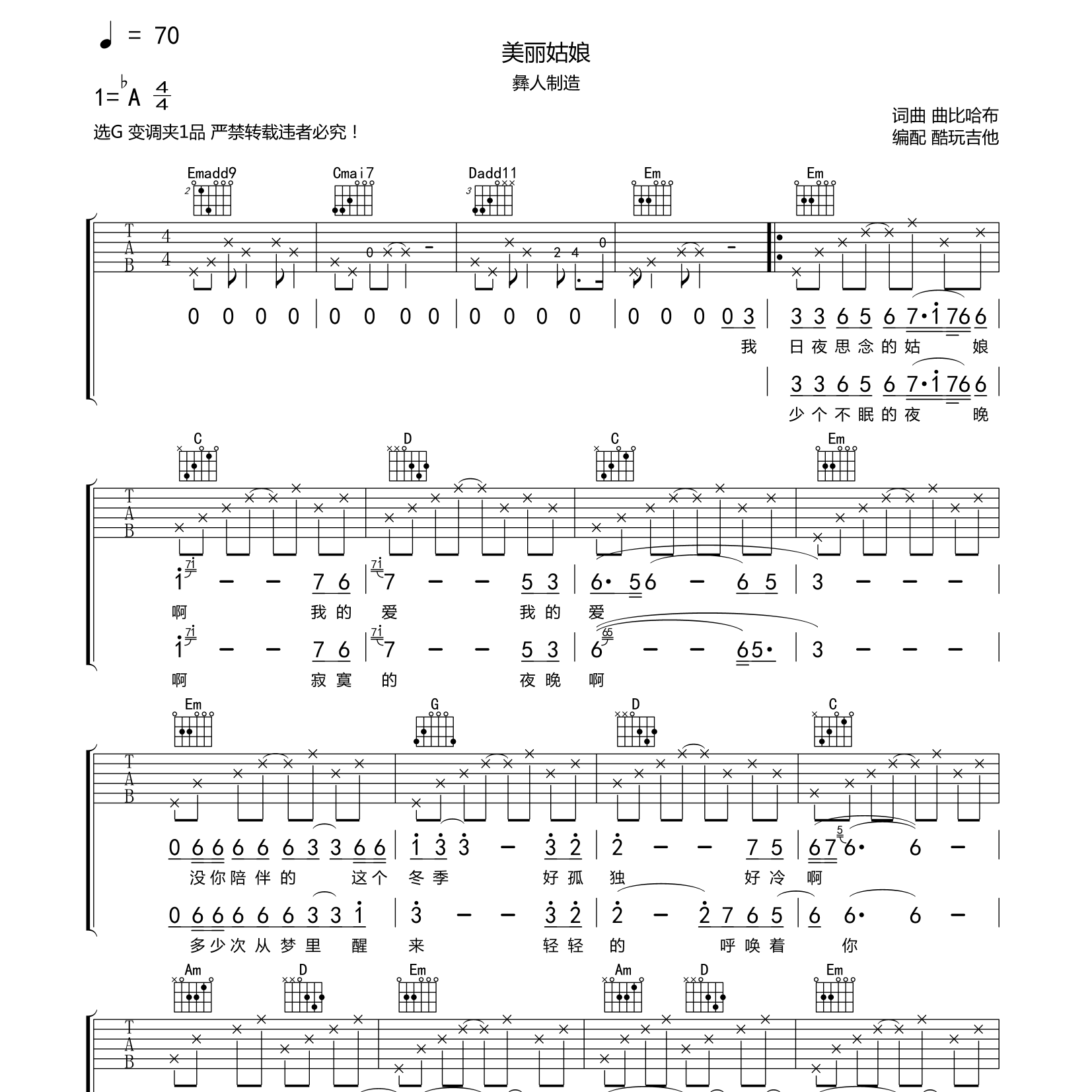 美丽姑娘吉他谱G调(超高还原度版本)彝人制造弹唱六线谱
