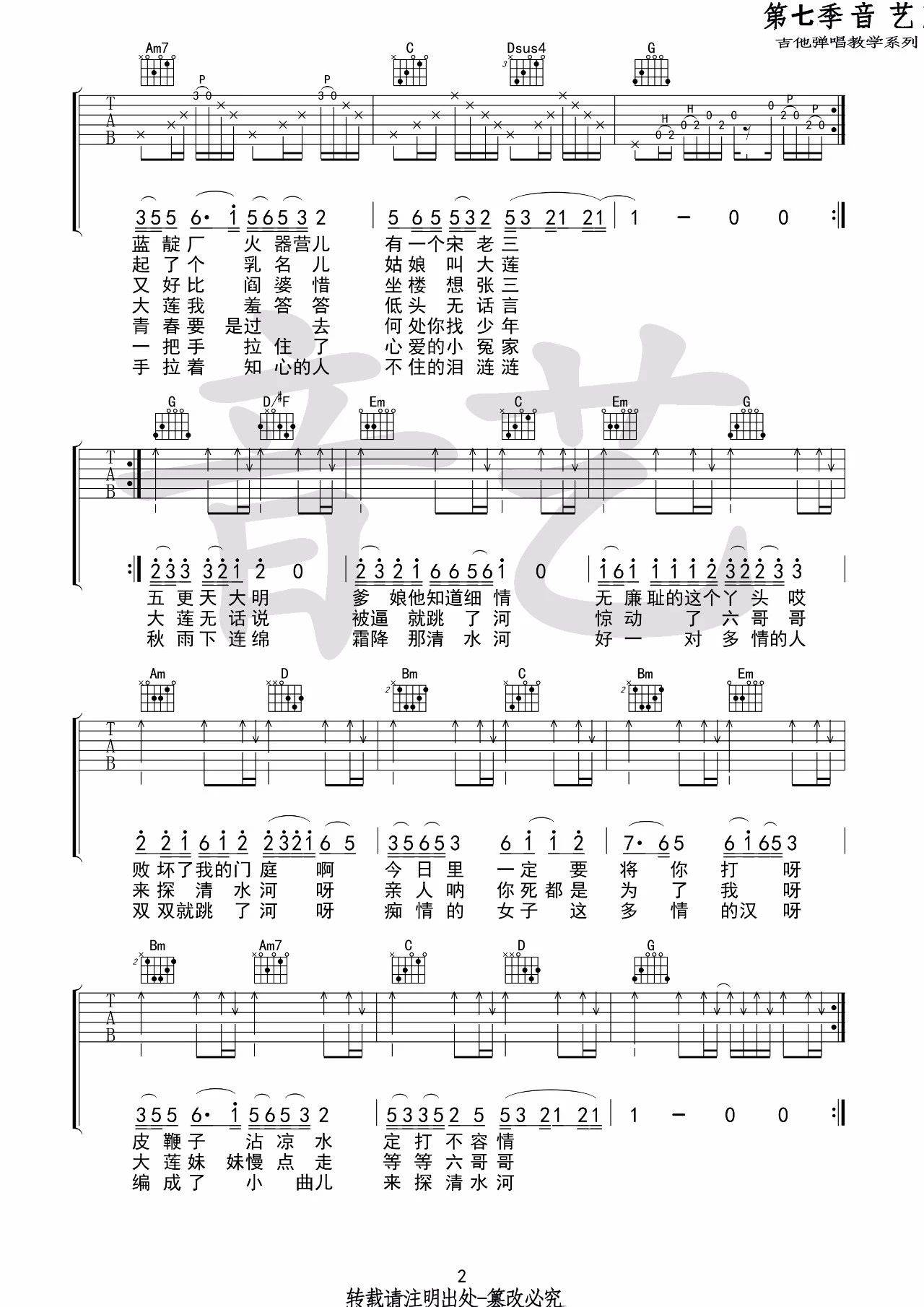探清水河吉他谱 G调音艺吉他编配_晓月老板版本