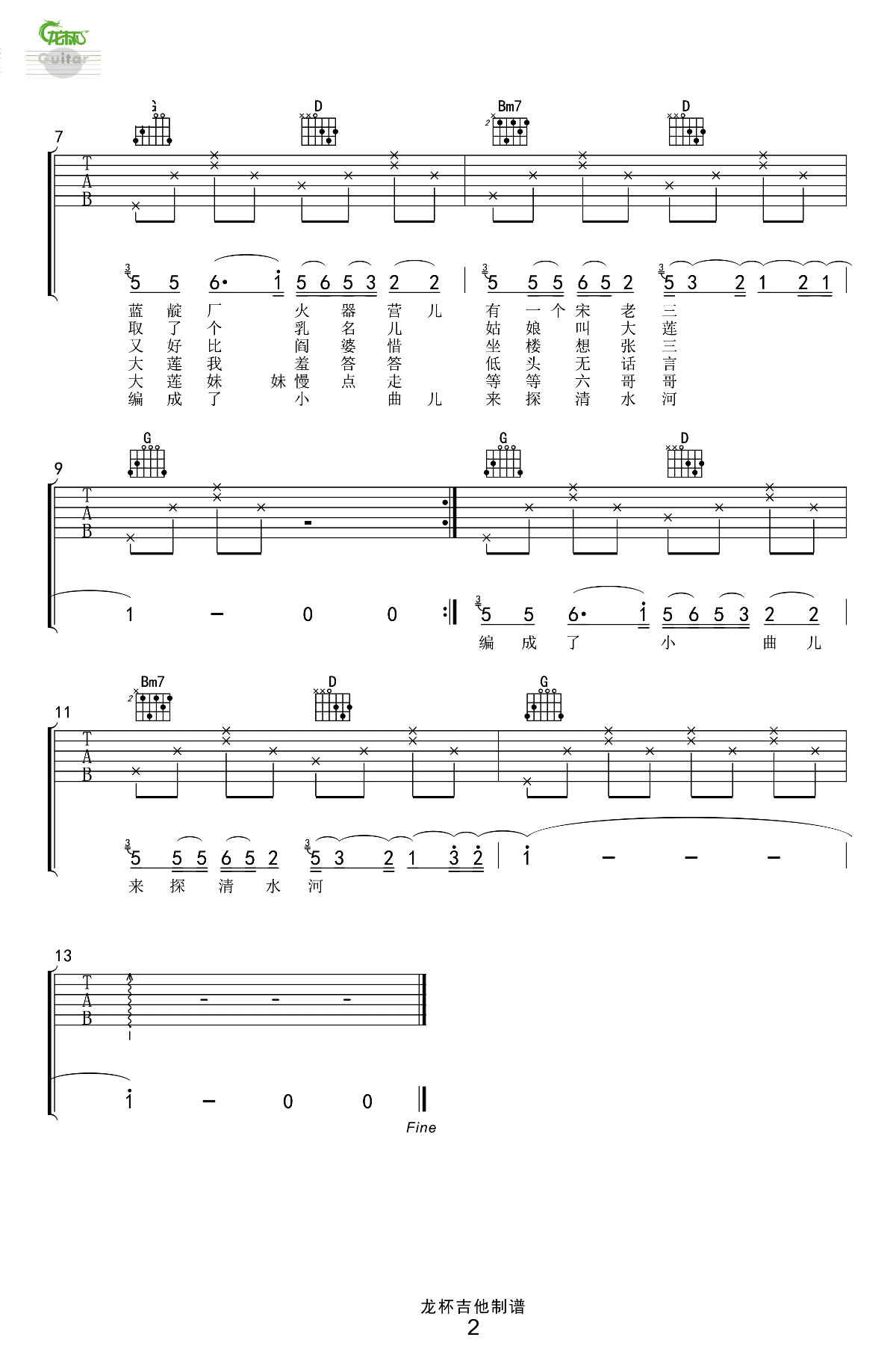 探清水河吉他谱 A调_龙杯吉他编配张云雷版本
