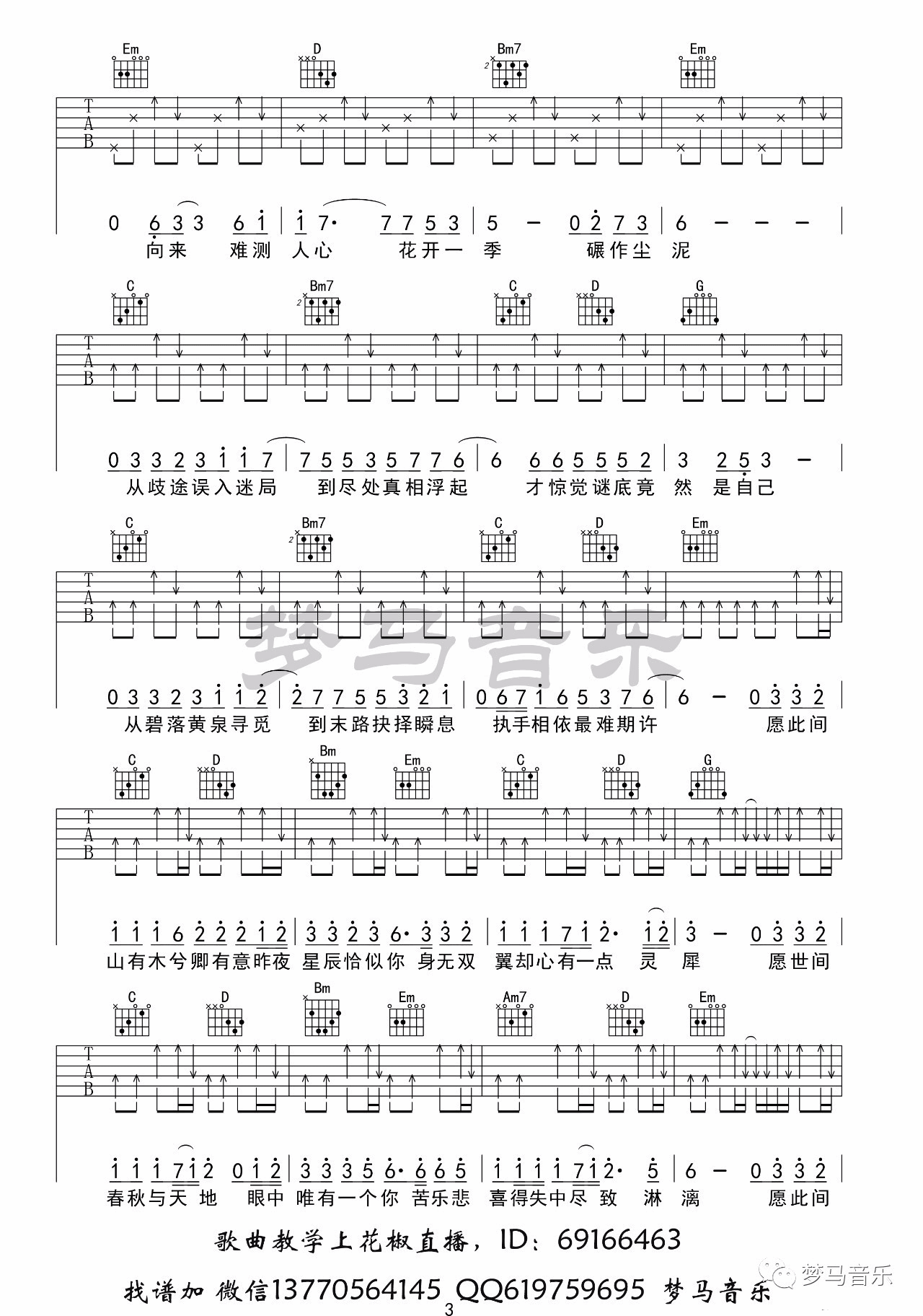 山有木兮吉他谱 G调_梦马音乐编配_伦桑