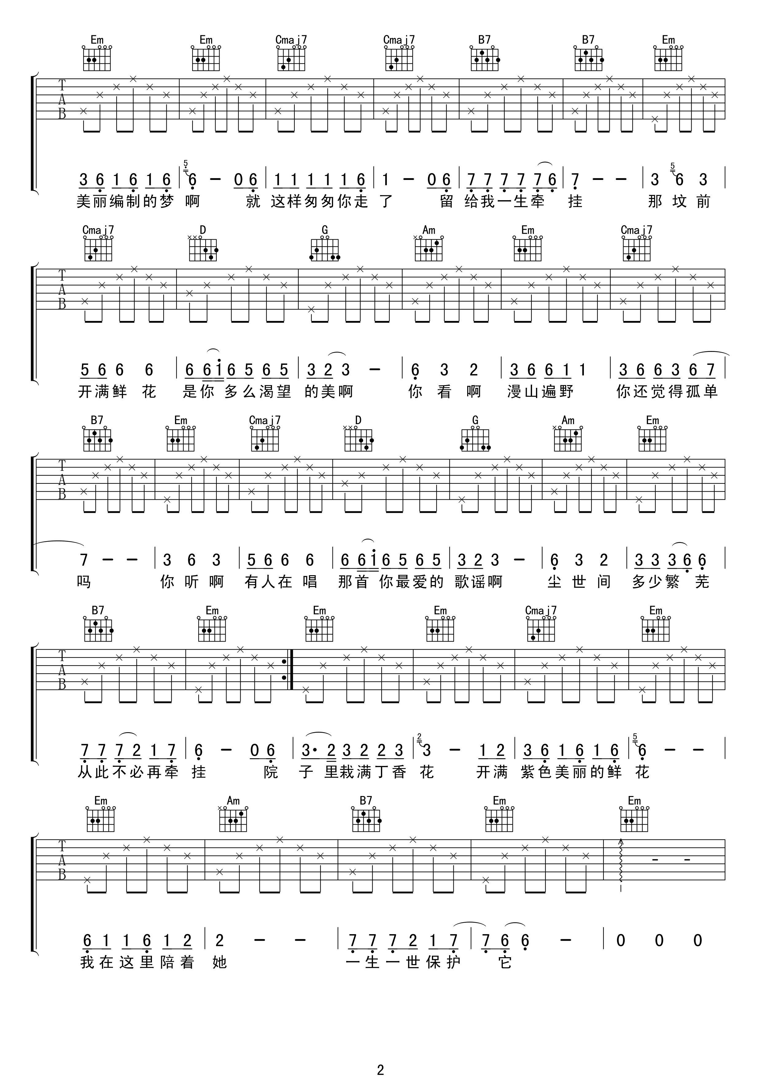 丁香花吉他谱采用G调指法,由唐磊演唱。这是一首很早之前就听过的歌了。无论是在小学课本里学到的丁香花,还是在电视前充满深情的唱。紫色的,淡淡的却充满芬香。细细理解歌词之后发现其实故事并不是想象中那么美好。这首歌满怀思念,对于那个人无限寄托的美好。你看呐这山上开满遍地鲜花,我已经把你喜欢的画中满满个院子,你看到吗?深情却又伤感。