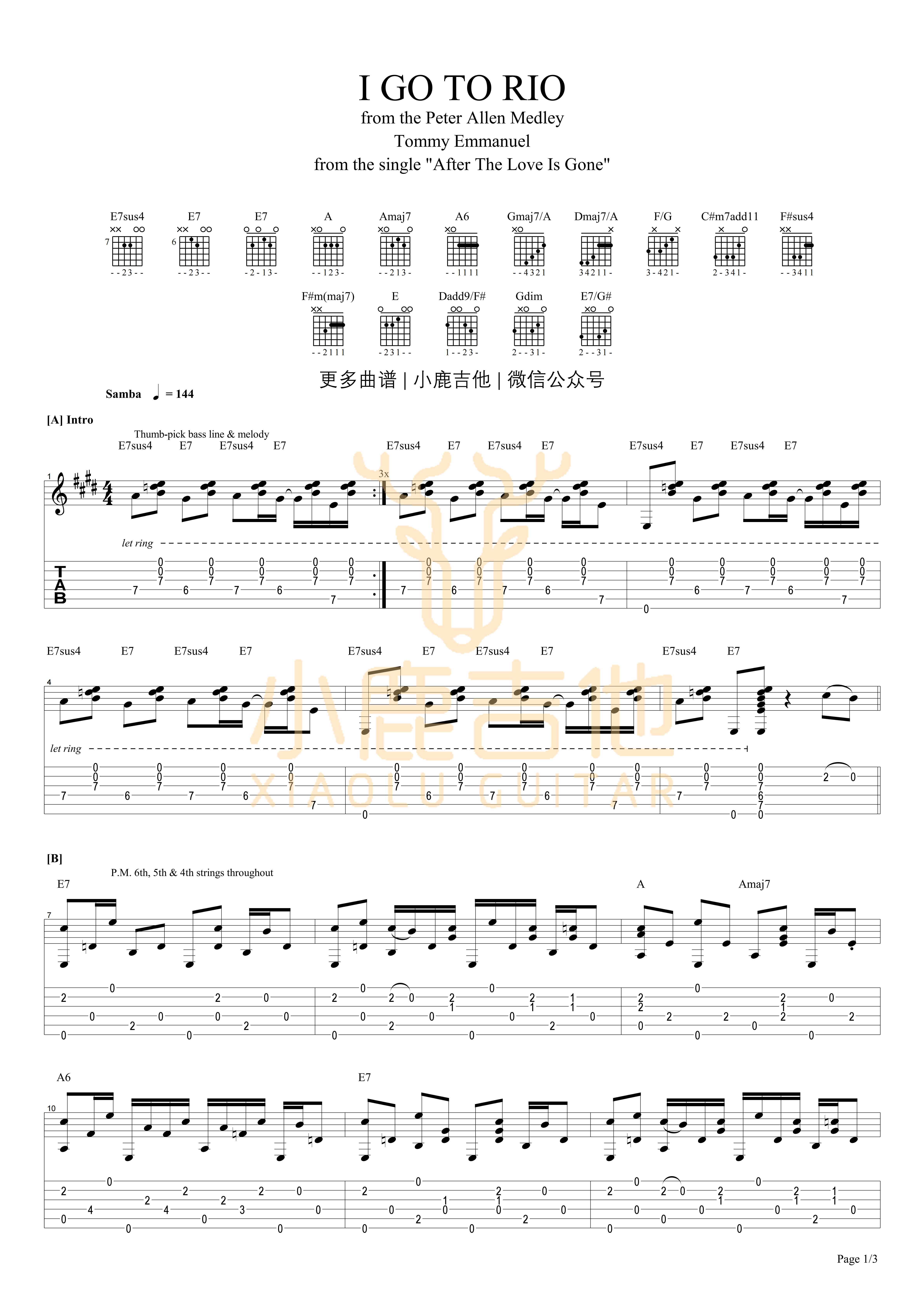 I Go To Rio-Tommy Emmanuel指弹吉他谱(小鹿吉他)