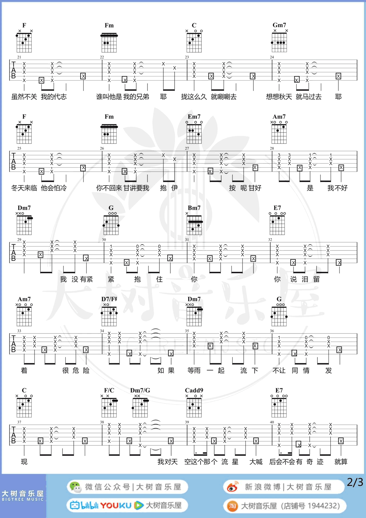《好久不见》吉他谱 C调弹唱谱_周杰伦_大树音乐屋制谱