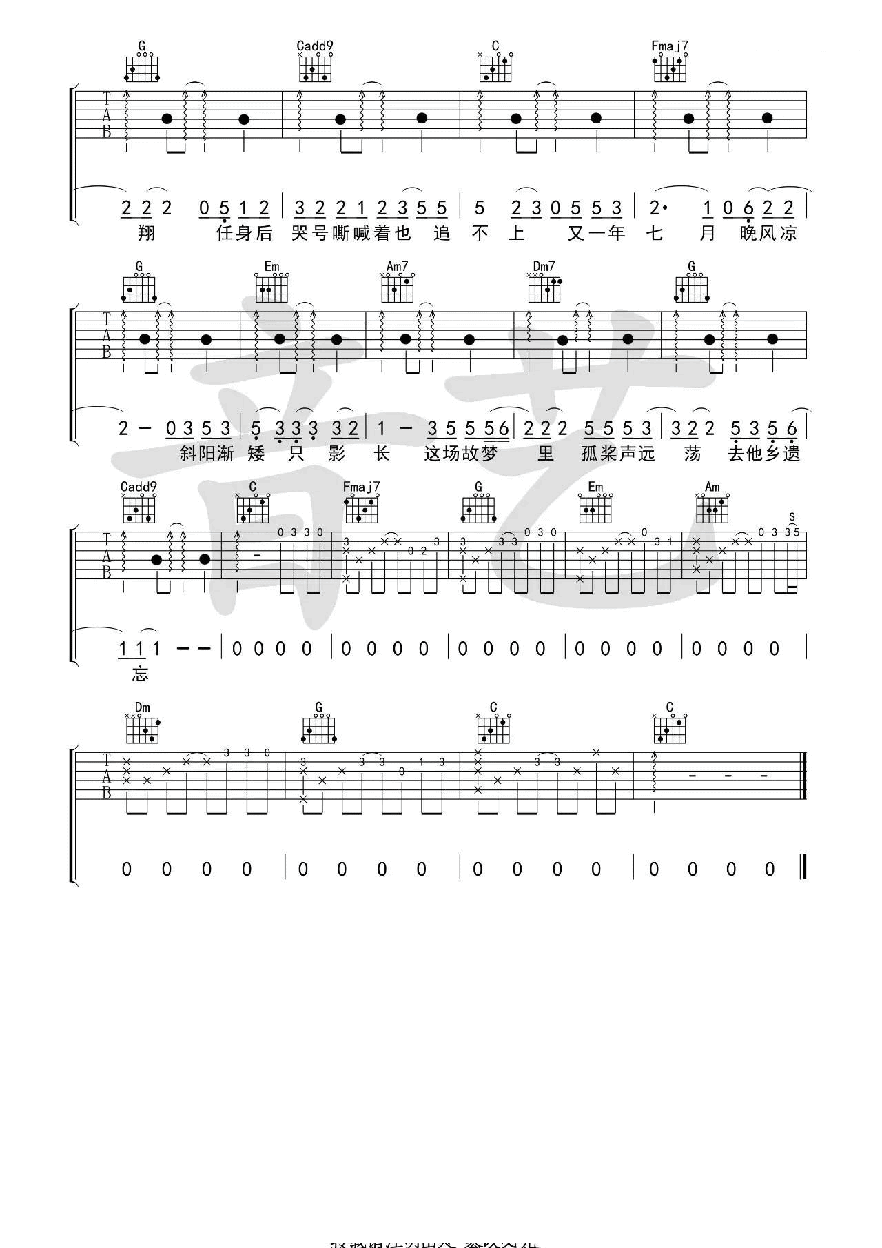 故梦吉他谱 C调_音艺吉他编配_双笙