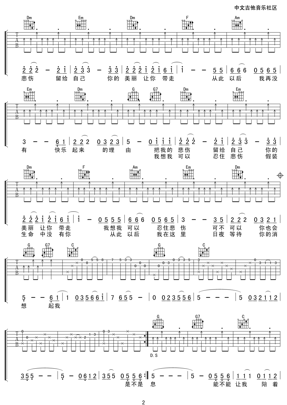 把悲伤留给自己吉他谱 C调_17吉他版本_陈升