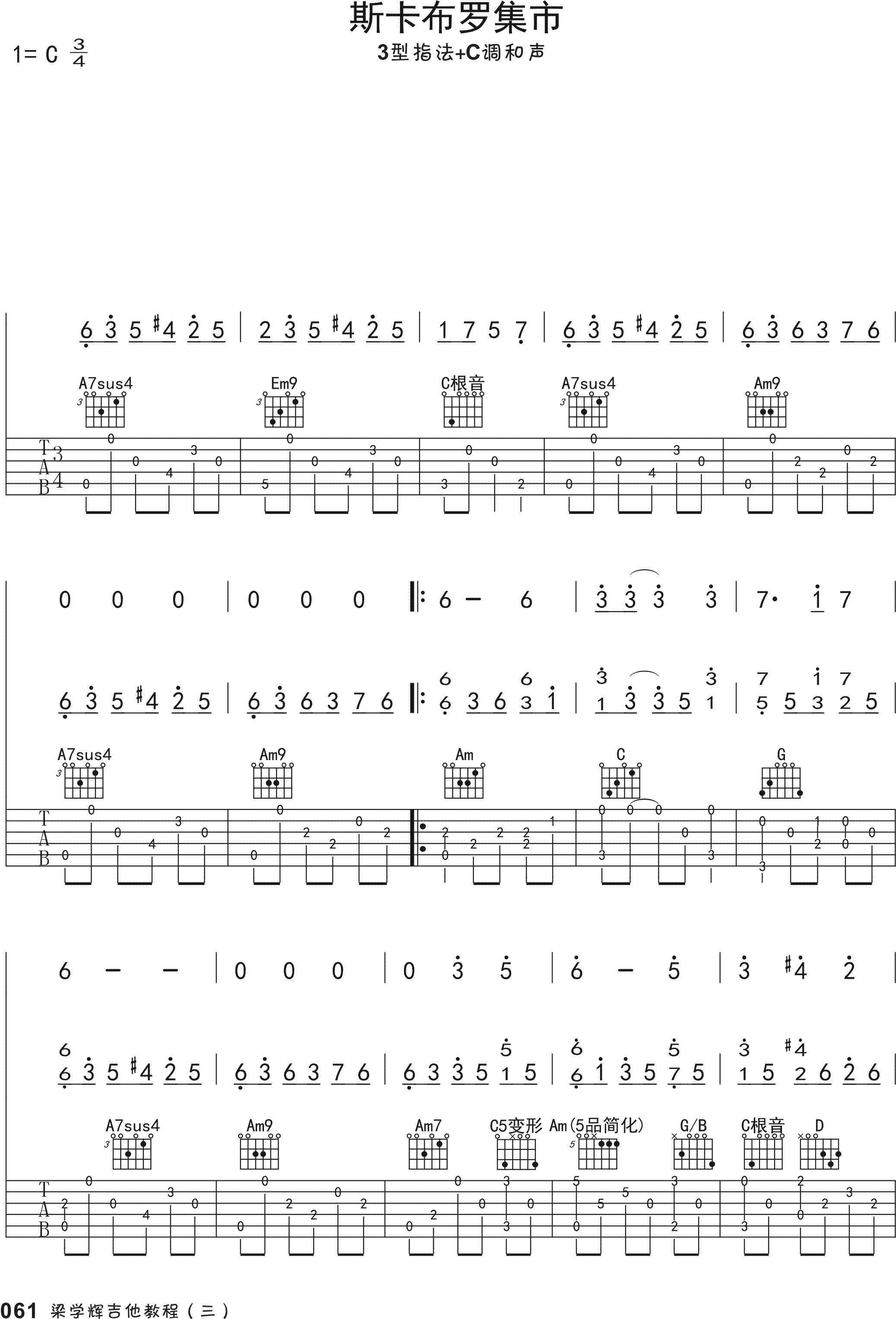斯卡波罗集市吉他谱 C调简单版_梁学辉吉他编配_李玲玉