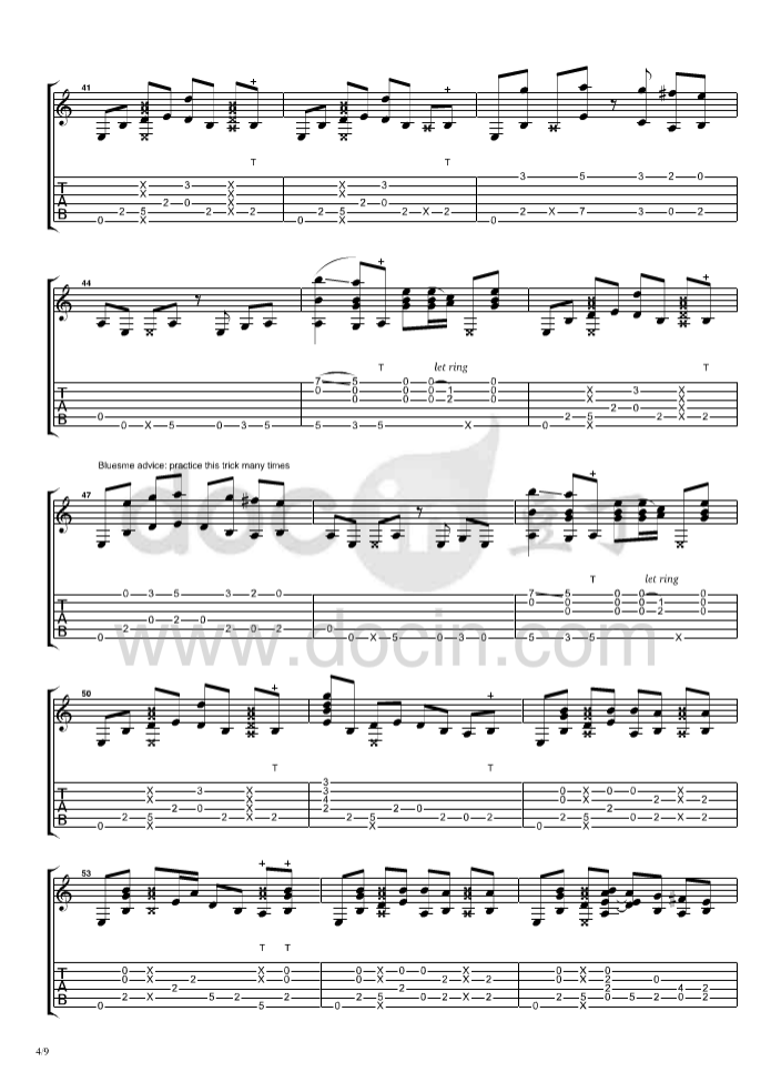 billie jean指弹谱 原调六线谱_豆丁网编配_郑成河