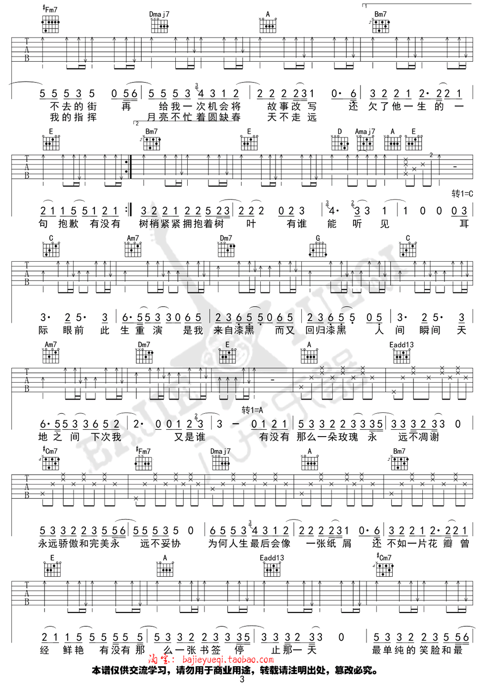 如烟吉他谱 A调_八戒乐器编配_艾怡良