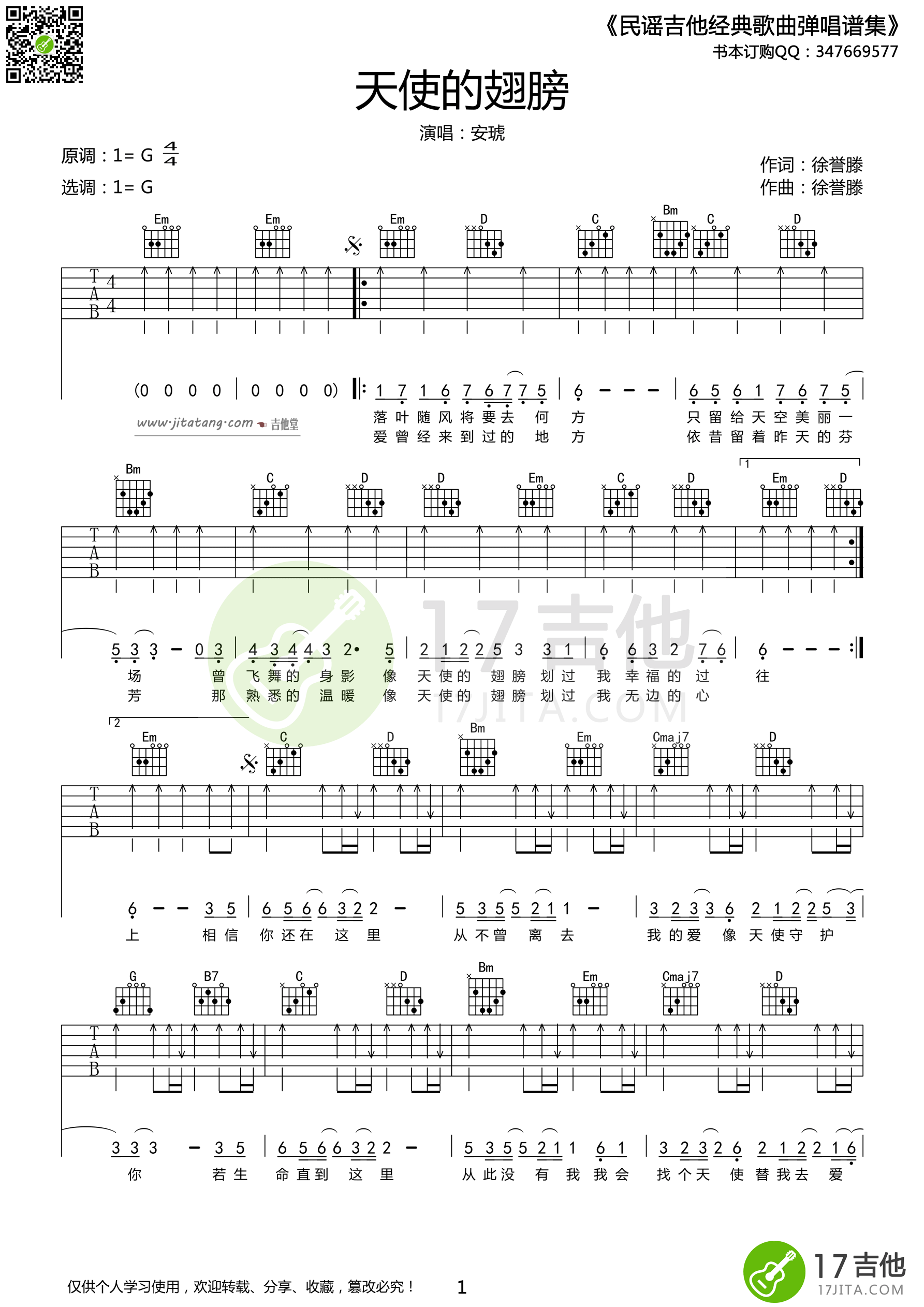 天使的翅膀吉他谱 G调_17吉他编配_安琥