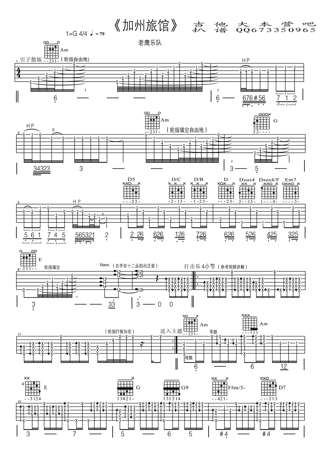 加州旅馆指弹谱 六线谱_吉他大本营编配_老鹰乐队
