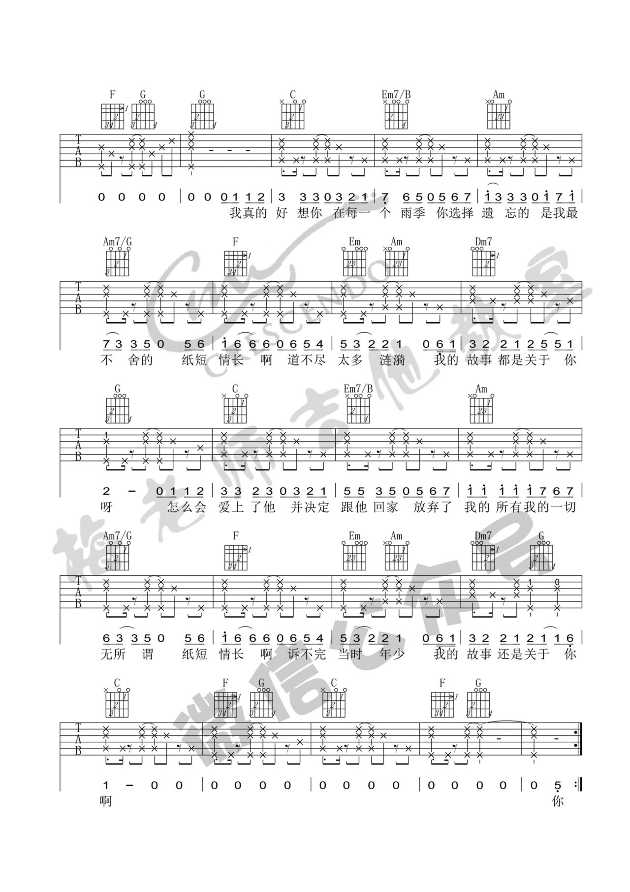 纸短情长吉他谱 C调男生版_梅老师吉他教室编配_烟把儿乐队