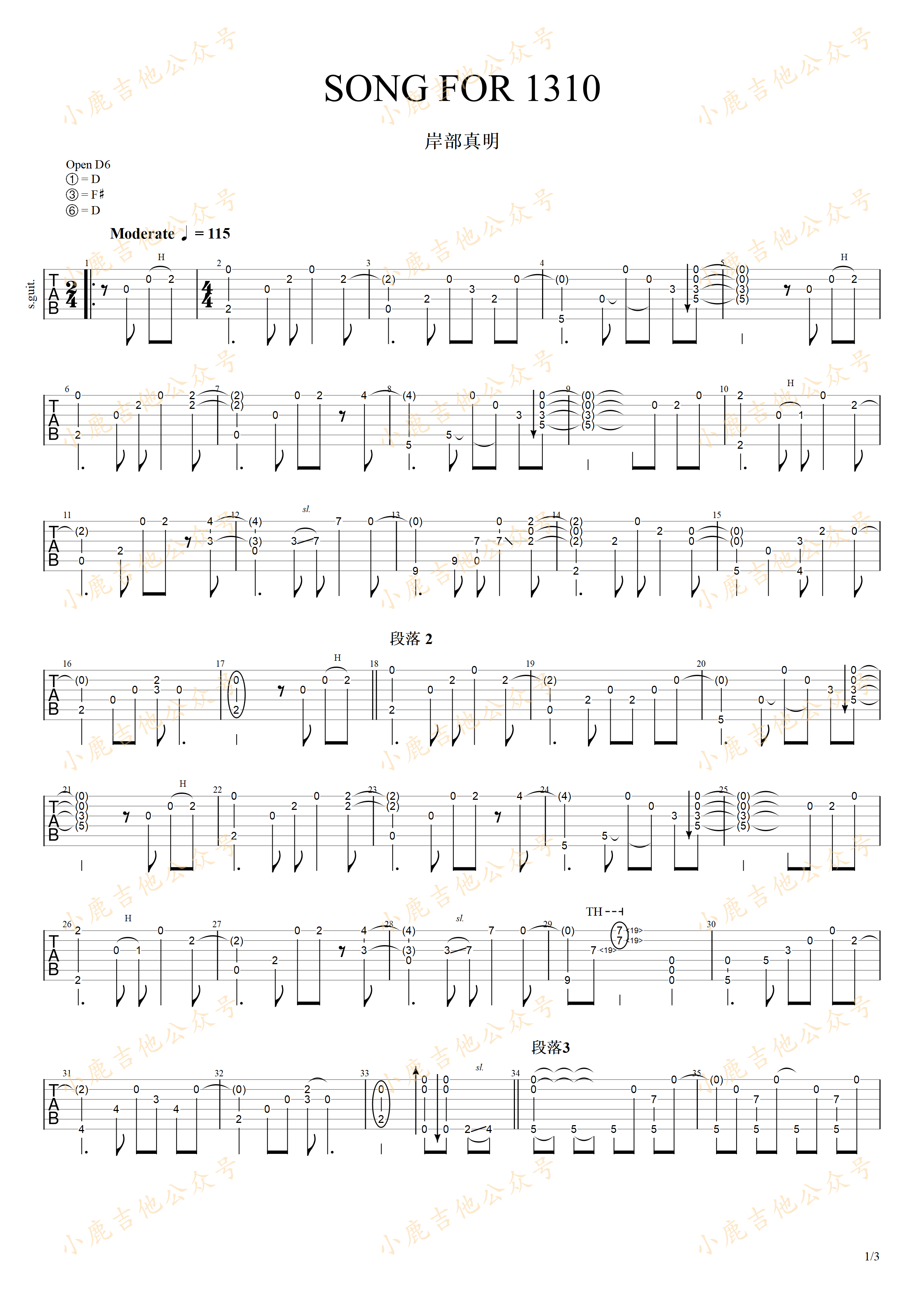 SONG FOR 1310-岸部真明 指弹吉他谱(小鹿吉他)
