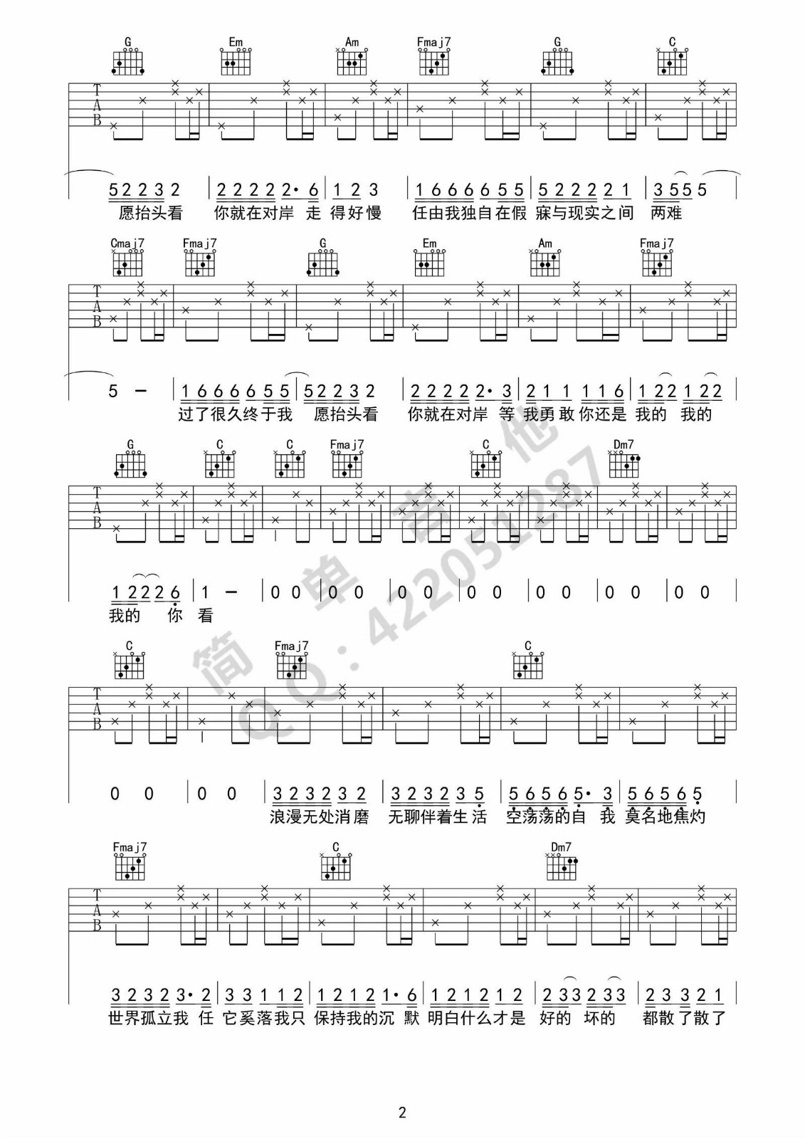 走马吉他谱 C调简单版_简单吉他编配_陈粒