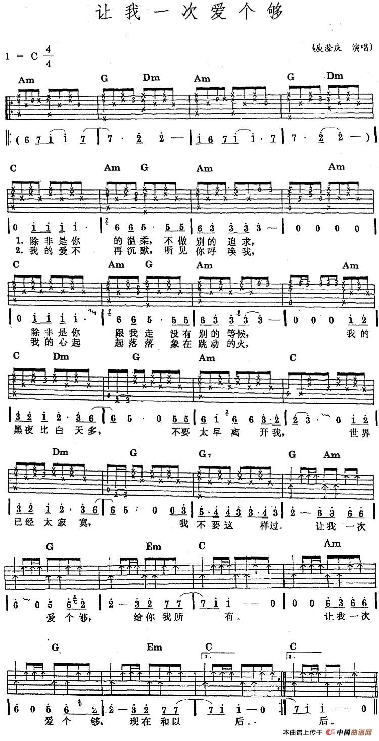 让我一次爱个够吉他谱 C调六线谱_中国曲谱网编配_庾澄庆