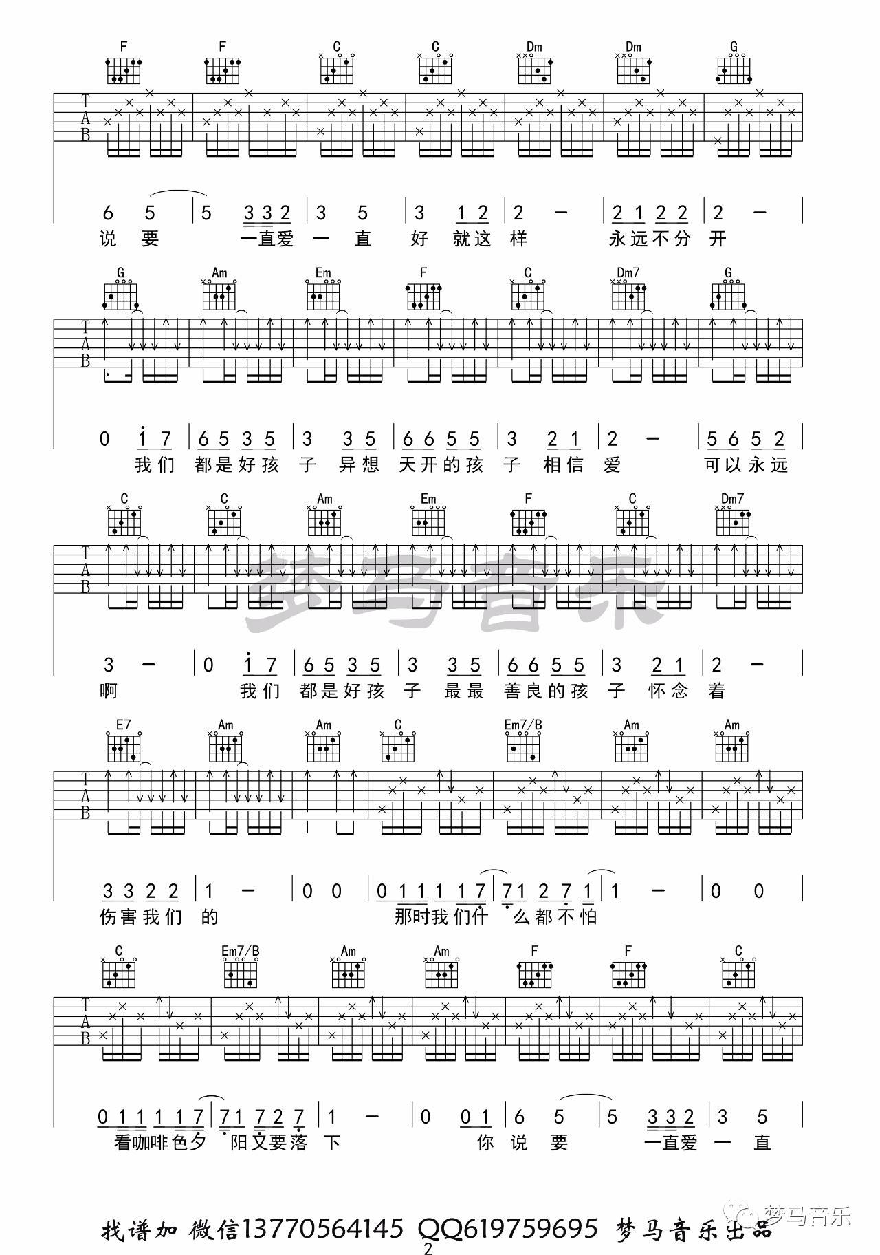 我们都是好孩子吉他谱 C调高清版_梦马音乐编配_王筝